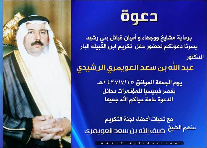 رد: دعوه عامه لحضور حفل تكريم دكتور:عبدالله بن سعد العويمري