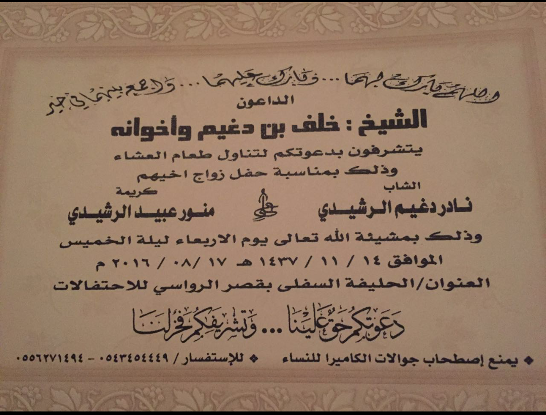 رد: دعوة زواج : الاستاذ نادر دغيم ذرف القلادي الرشيدي