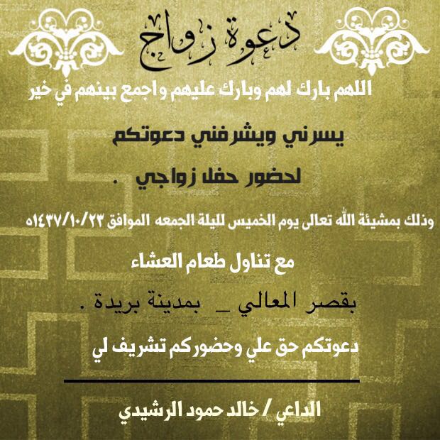 دعوة لحضور حفل زواج: خالد حمود الرشيدي