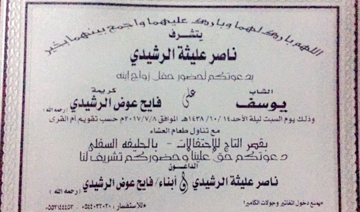 دعوة عامه لحضور زواج الاستاذ:يوسف ناصر البويدي